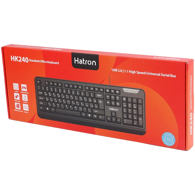 دارای 104 عدد کلید، حروف حک شده فارسی بر روی کیبورد، دارای عمر ضربه پذیری بیش از 10 میلیون بار کلیک